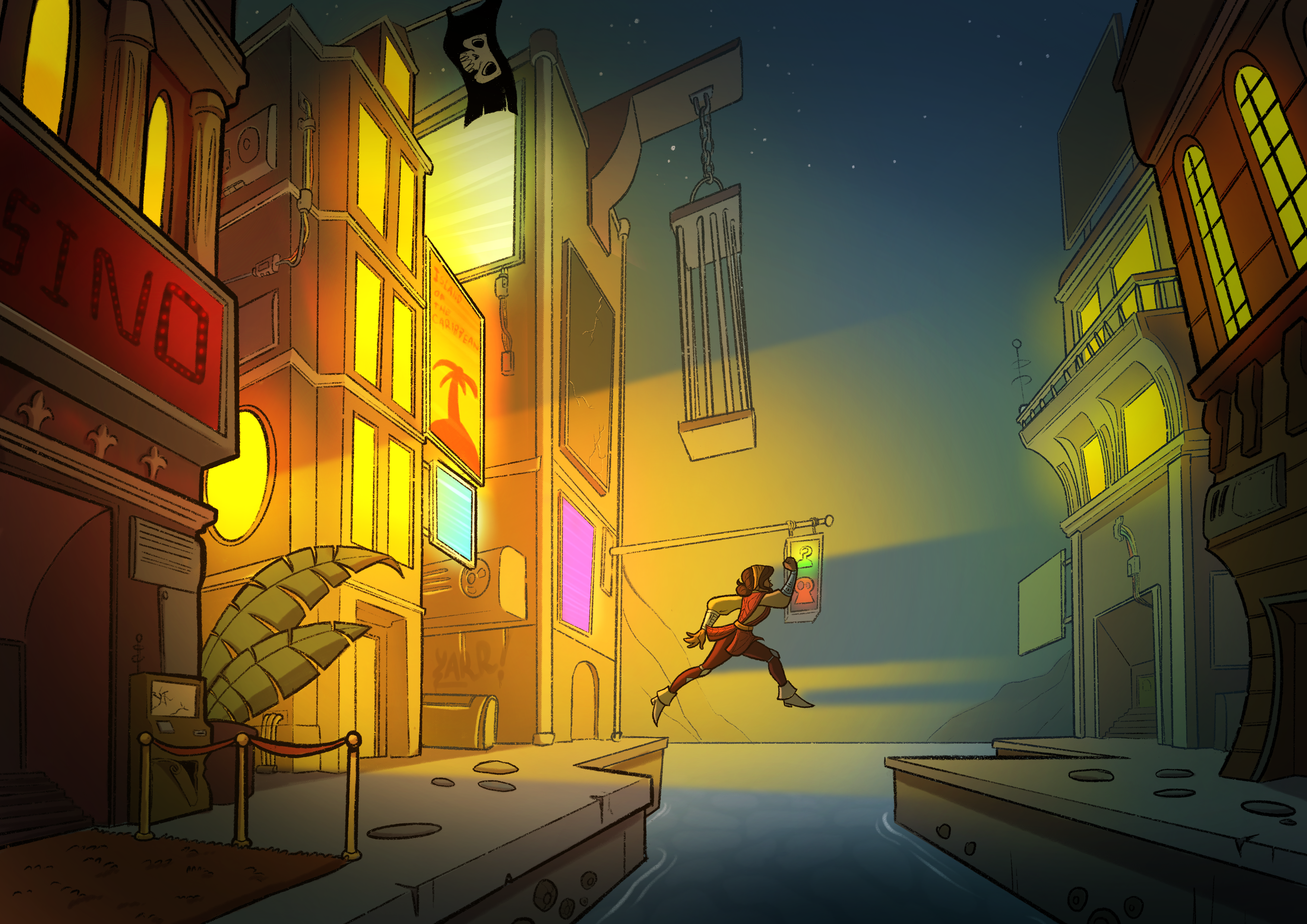 A world that flooded a long time ago never grew past it’s 16th century pirate phase. Now rocket-powered pirates roam the earth and sea monsters infest the waters.
